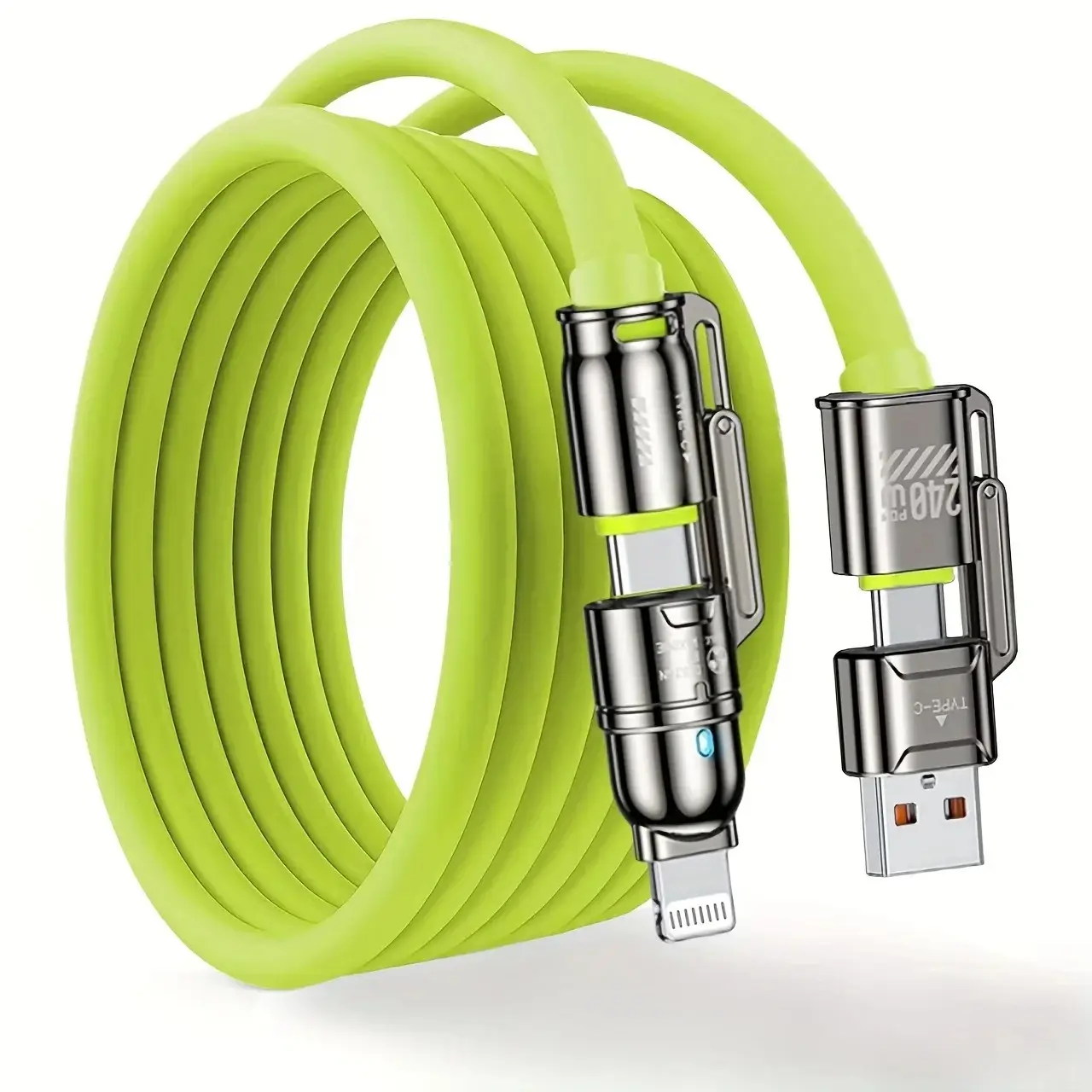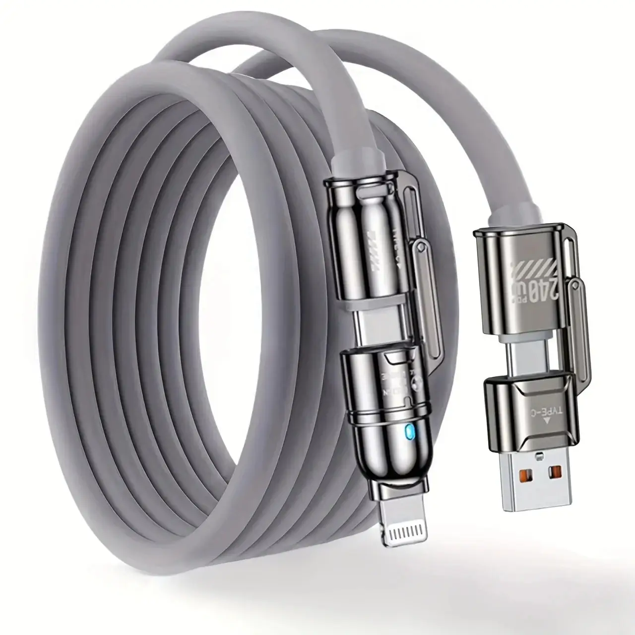 The USB-C 4-in-1 Type-C Cable 240W is a revolutionary charging solution that eliminates the need for multiple cables. Featuring a unique interchangeable head design, it can switch between USB-A and Type-C, USB-A and Lightning, Type-C and Type-C, and Type-C and Lightning. This makes it compatible with almost every modern device, including MacBooks, iPads, and the latest smartphones.